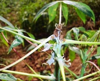 Os folders da Epagri orientam que o acompanhamento da lavoura seja feito semanalmente, seguindo metodologia específica. Entre as recomendações de manejo estão a eliminação de brotos atacados e de restos culturais, o tratamento adequado das ramas para armazenamento, o uso de manivas sadias, a escolha de variedades menos suscetíveis e o plantio em épocas mais adequadas. A manutenção de uma adubação equilibrada e a evitação de novas áreas de cultivo próximas a lavouras infestadas também são destacadas.