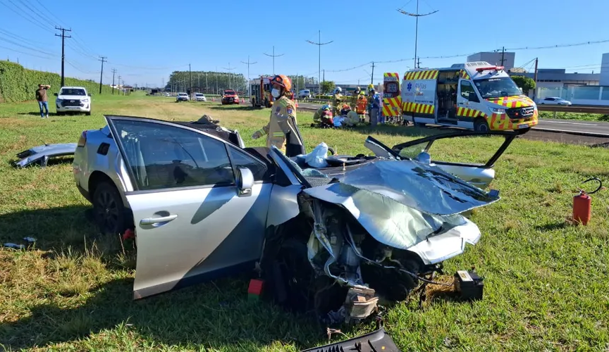 Um grave acidente chamou atenção na manhã desta sexta-feira (19) no trecho da BR-369, entre Apucarana e Arapongas no Paraná. Um Citroën C4, ocupado por três mulheres, saiu da pista e colidiu violentamente contra um muro, ficando completamente destruído.