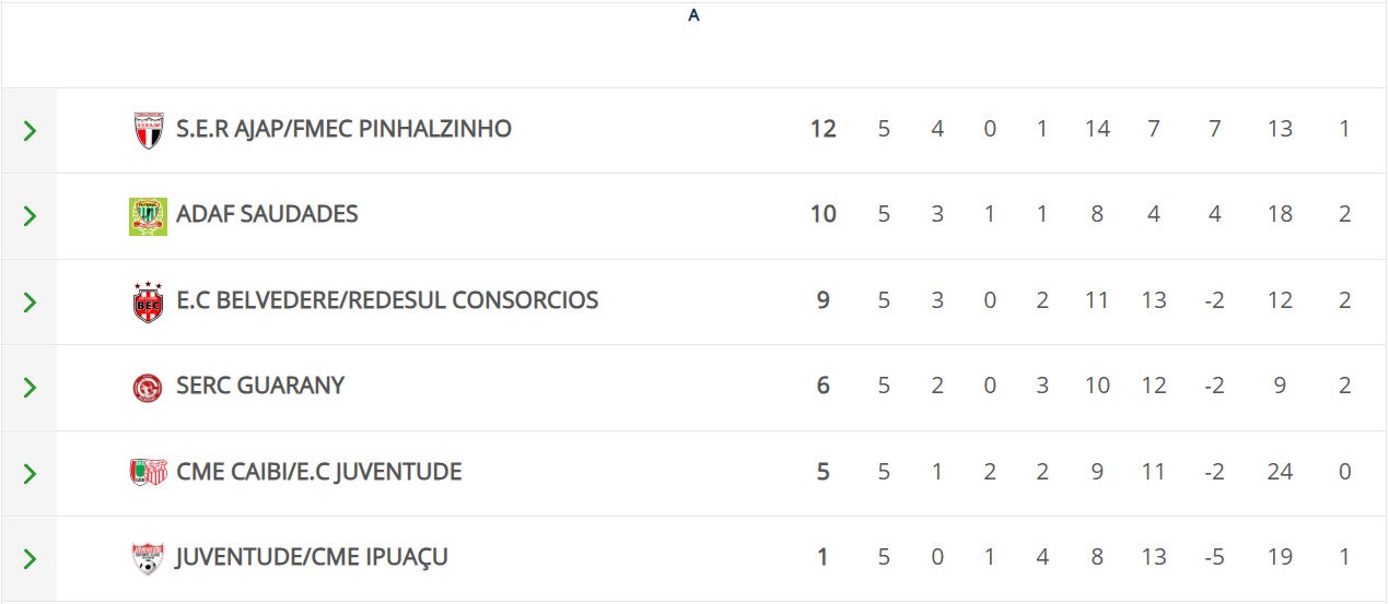 Pela chave A, o Ajap foi até Ipuaçu e venceu o Juventude/Ipuaçu por 3 a 1, resultado que garantiu a equipe na liderança do grupo. A vitória fez o time ultrapassar a Adaf Saudades, que acabou derrotada em casa pelo SERC Guarany por 3 a 2. Mesmo com o revés, a equipe de Saudades assegurou vaga na segunda colocação.