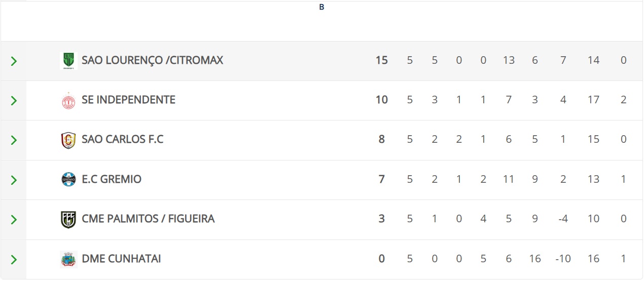 Na chave B, o Grêmio Santa Lúcia fez valer o mando de campo em Pinhalzinho e goleou o Figueira/Palmitos por 5 a 1. O resultado confirmou a classificação da equipe na quarta posição do grupo e garantiu presença no mata-mata.