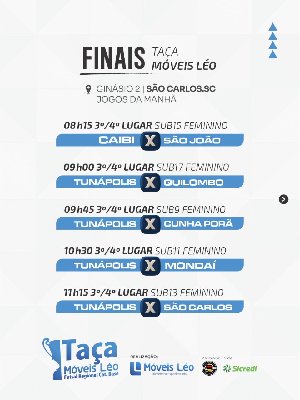A competição contempla categorias masculinas do Sub-07 ao Sub-17 e femininas do Sub-09 ao Sub-17, oferecendo oportunidade para centenas de jovens atletas mostrarem seu talento e desenvolvimento no esporte. Iniciada em abril, a Taça Móveis Léo chega ao fim justamente em uma data simbólica: o Dia das Crianças e o aniversário da Móveis Léo, unindo esporte, confraternização e incentivo ao futsal de base.