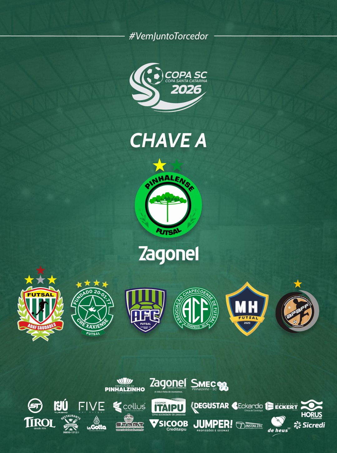 Atual vice-campeã da competição, a Pinhalense Futsal Zagonel está no grupo A. Na primeira fase, a equipe terá pela frente Adaf Saudades, Chapeconse Futsal, Catanduvas, Apaff Florianópolis, Xaxiense/Arvoredo e Maravilha Futsal.
