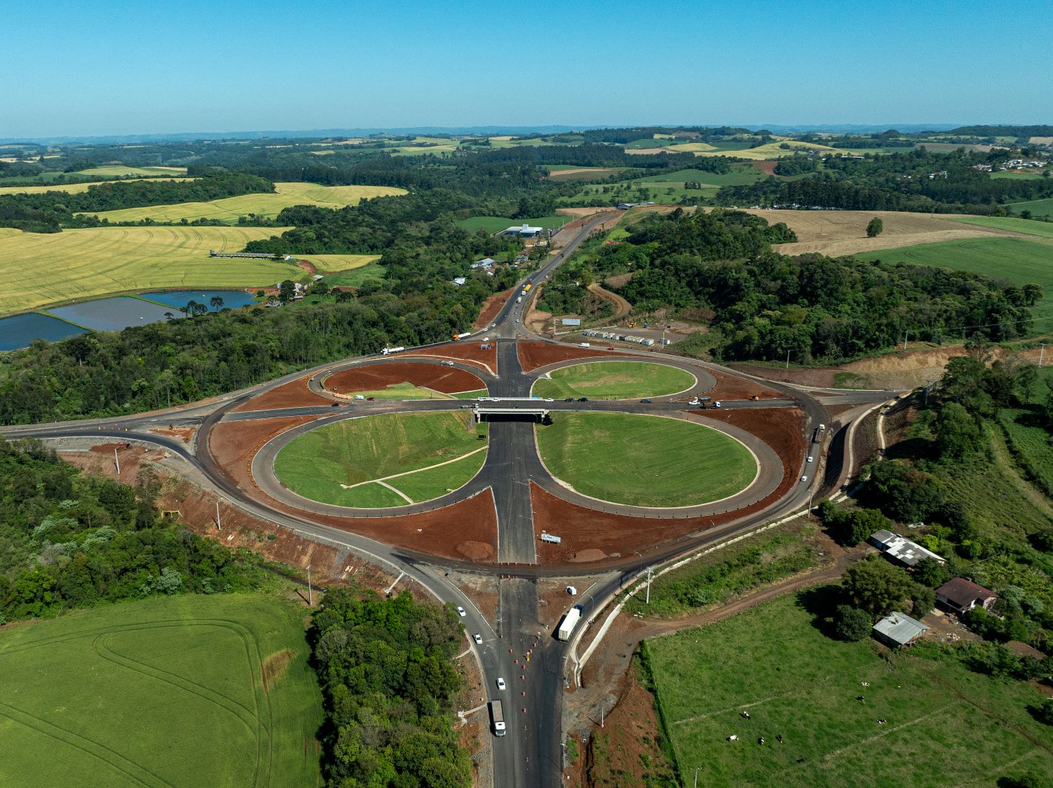 Durante décadas, o antigo entroncamento em formato de “T” funcionou sem iluminação e apresentava riscos constantes para o trânsito pesado. O novo modelo de trevo elevado oferece acessos seguros, maior visibilidade e fluidez no tráfego, eliminando os perigos de colisões frontais e laterais que marcaram a história do local.