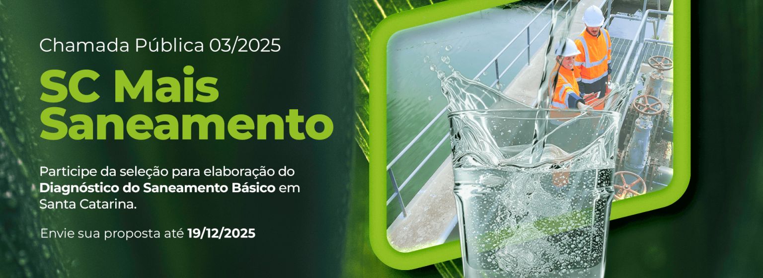 A Secretaria do Meio Ambiente e da Economia Verde (Semae) em parceria com o BRDE (Banco Regional de Desenvolvimento do Extremo Sul) lançou o edital da Chamada Pública 03/2025, que vai selecionar a empresa responsável por elaborar o Diagnóstico detalhado do Saneamento Básico em Santa Catarina. As propostas podem ser enviadas até 19 de dezembro, conforme o cronograma oficial.
