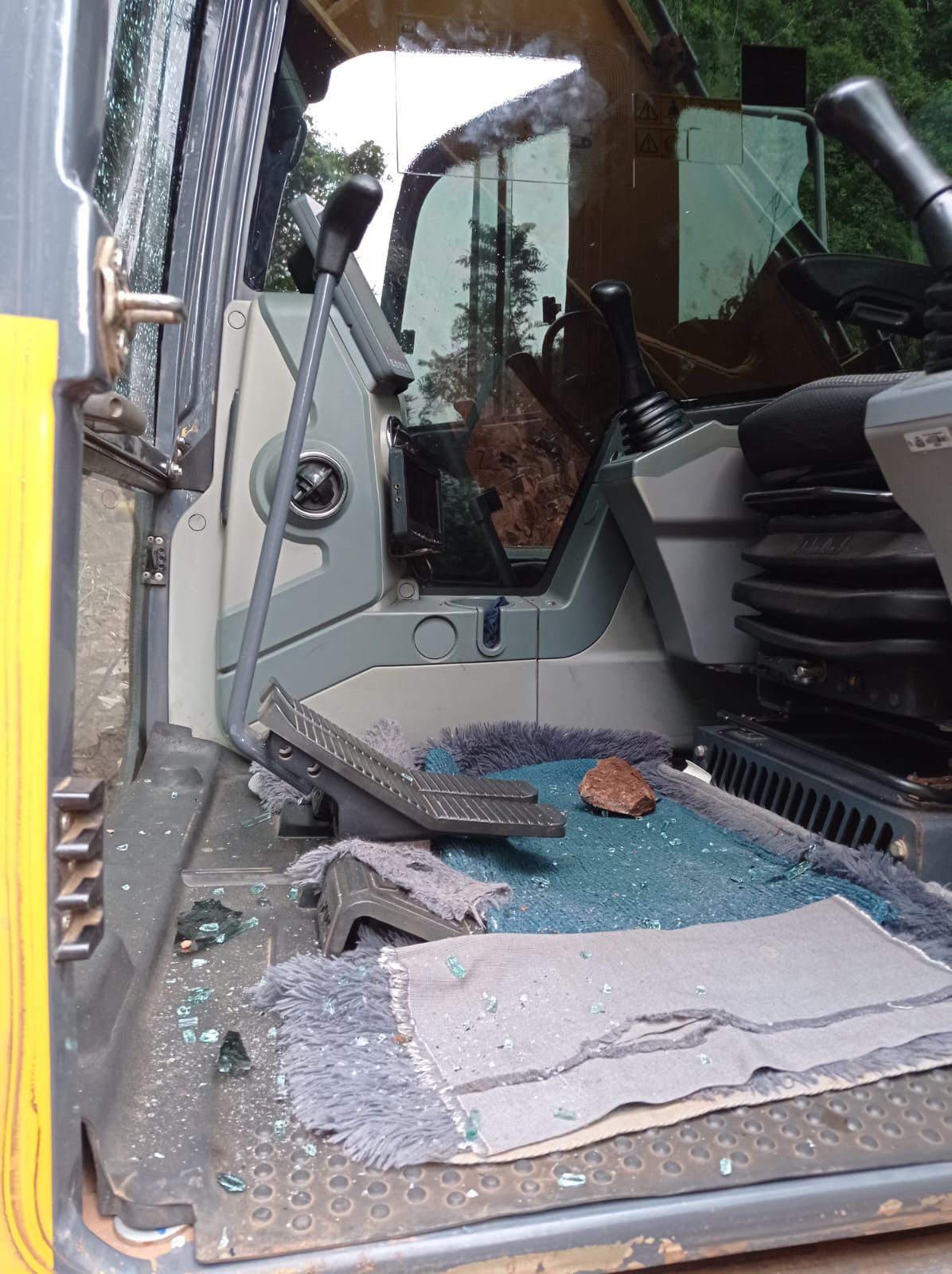 Segundo a nota divulgada pelo município, a máquina foi encontrada com vidros quebrados e pedras dentro de sua estrutura, comprometendo o equipamento e interrompendo temporariamente os trabalhos da obra.