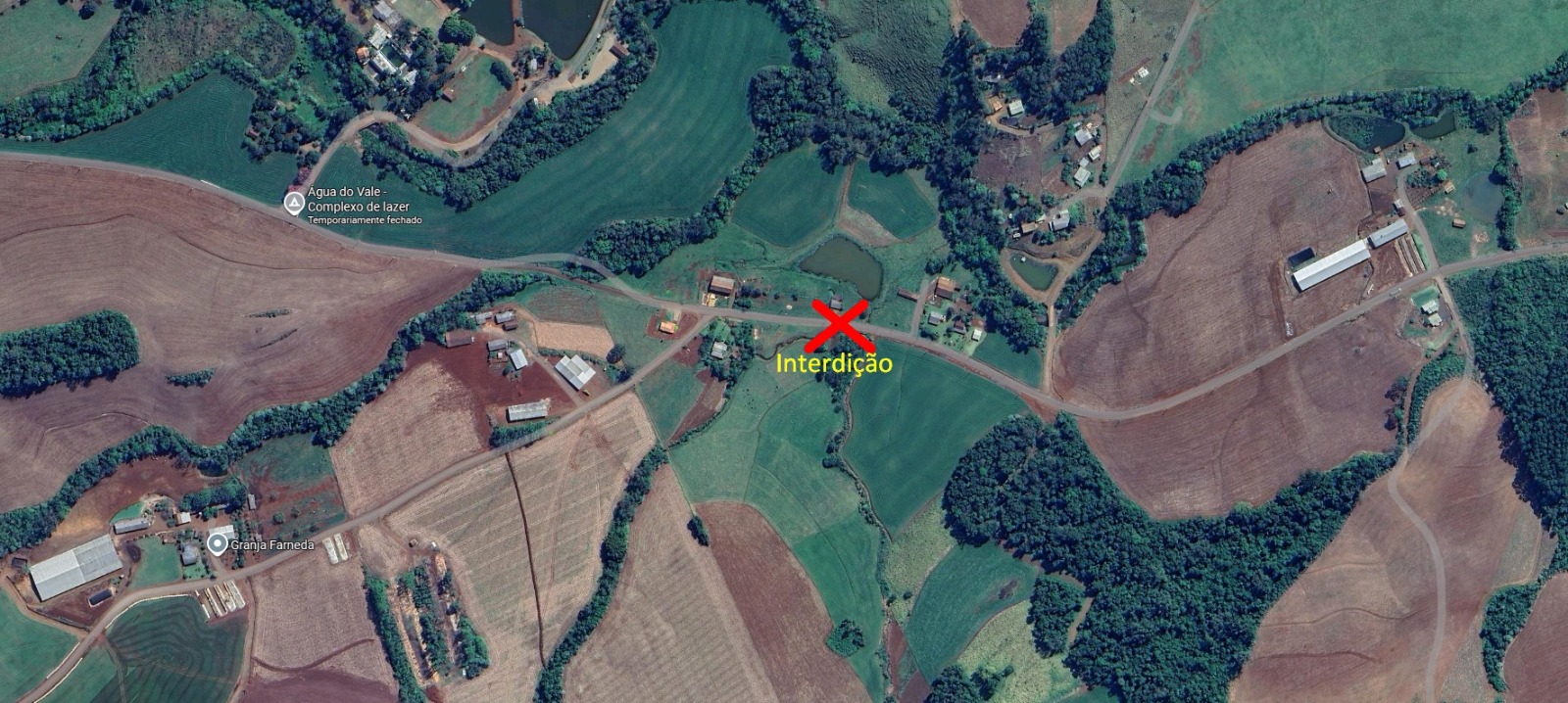 O bloqueio ocorre na altura da propriedade de José Bremm, em um ponto estratégico da estrada, que faz a ligação entre a Linha Santa Lúcia e o perímetro urbano do município. Durante os dois dias de trabalho, o tráfego estará completamente impedido no local.