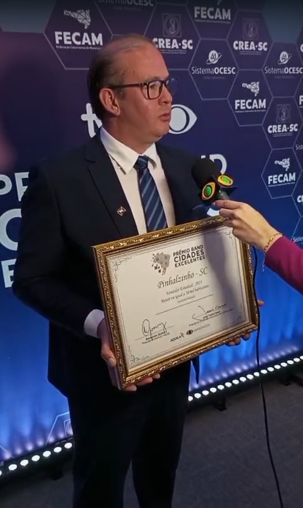 Pinhalzinho voltou a ganhar destaque em Santa Catarina ao ser reconhecida como vencedora no pilar de Sustentabilidade durante a etapa catarinense do Prêmio Band Cidades Excelentes 2025. A cerimônia foi realizada nesta terça-feira (18), em Florianópolis e avaliou a qualidade da gestão pública dos municípios brasileiros com base no Índice de Gestão Municipal Aquila (IGMA), composto por 72 indicadores que medem eficiência, transparência, oferta de serviços e desenvolvimento.
