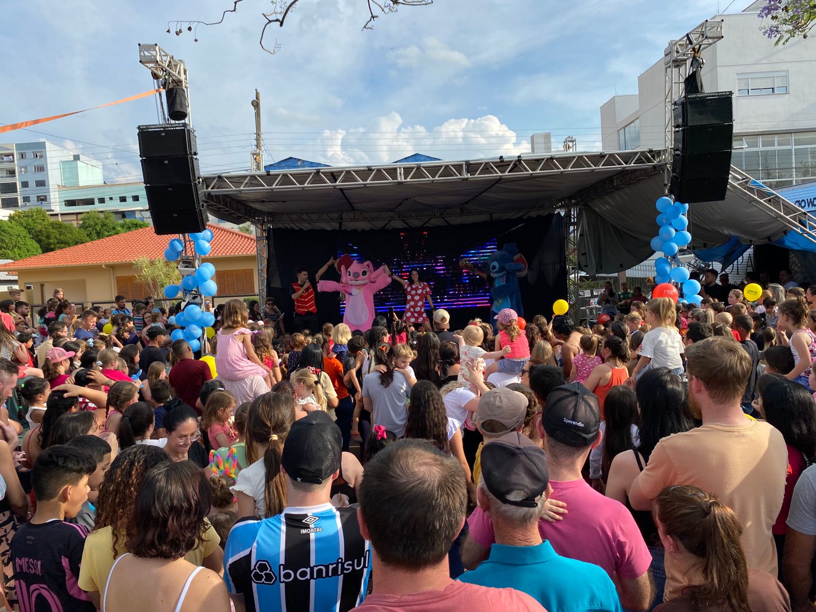 O ponto alto da festa foi o show infantil da Turma do Stitch, que levou o público ao delírio. O personagem querido das crianças interagiu com o público e garantiu uma apresentação cheia de energia e encantamento, coroando um dia feito especialmente para os pequenos.