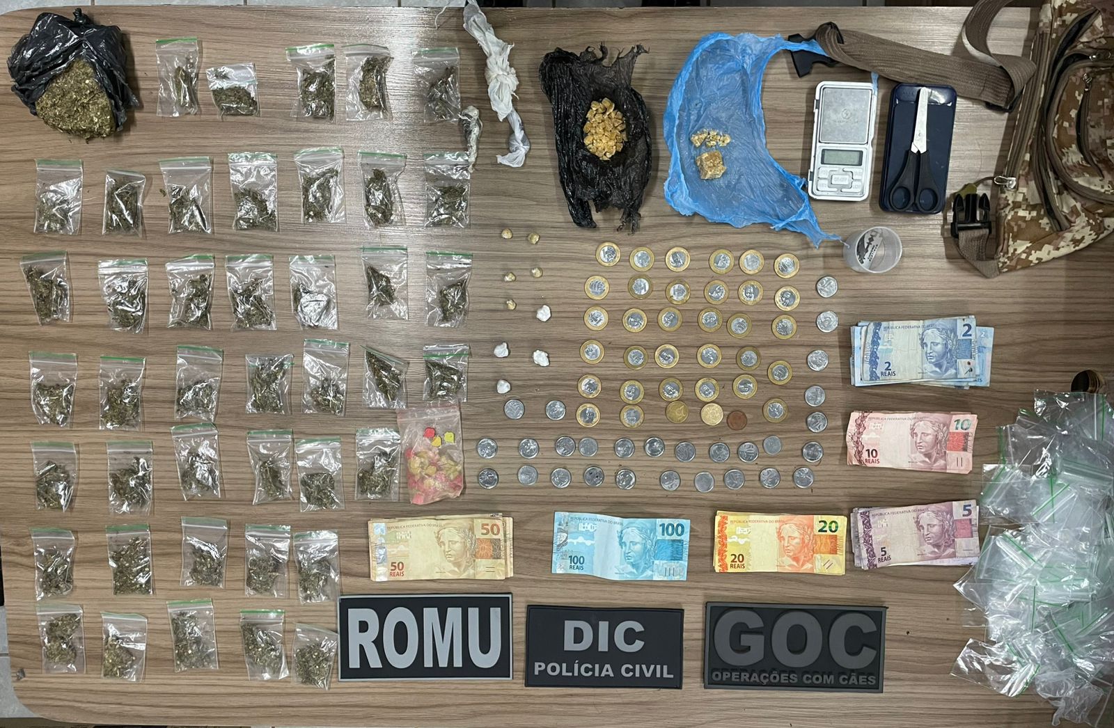 No imóvel, ainda foram encontrados objetos utilizados para o fracionamento e comercialização dos entorpecentes, como tesoura, duas lâminas, embalagens, balança de precisão e dinheiro em espécie. Um adolescente foi apreendido e encaminhado à Central de Plantão Policial. As investigações seguem para elucidar completamente o homicídio e apurar a possível ligação entre o crime e o tráfico de drogas na região.