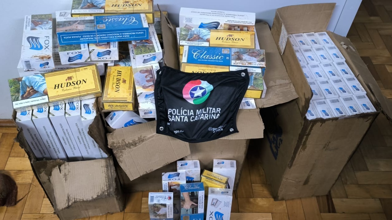 Durante buscas na região, os PMs encontraram aproximadamente 4 mil carteiras de cigarros de origem estrangeira, sem documentação fiscal, escondidas pelos suspeitos.