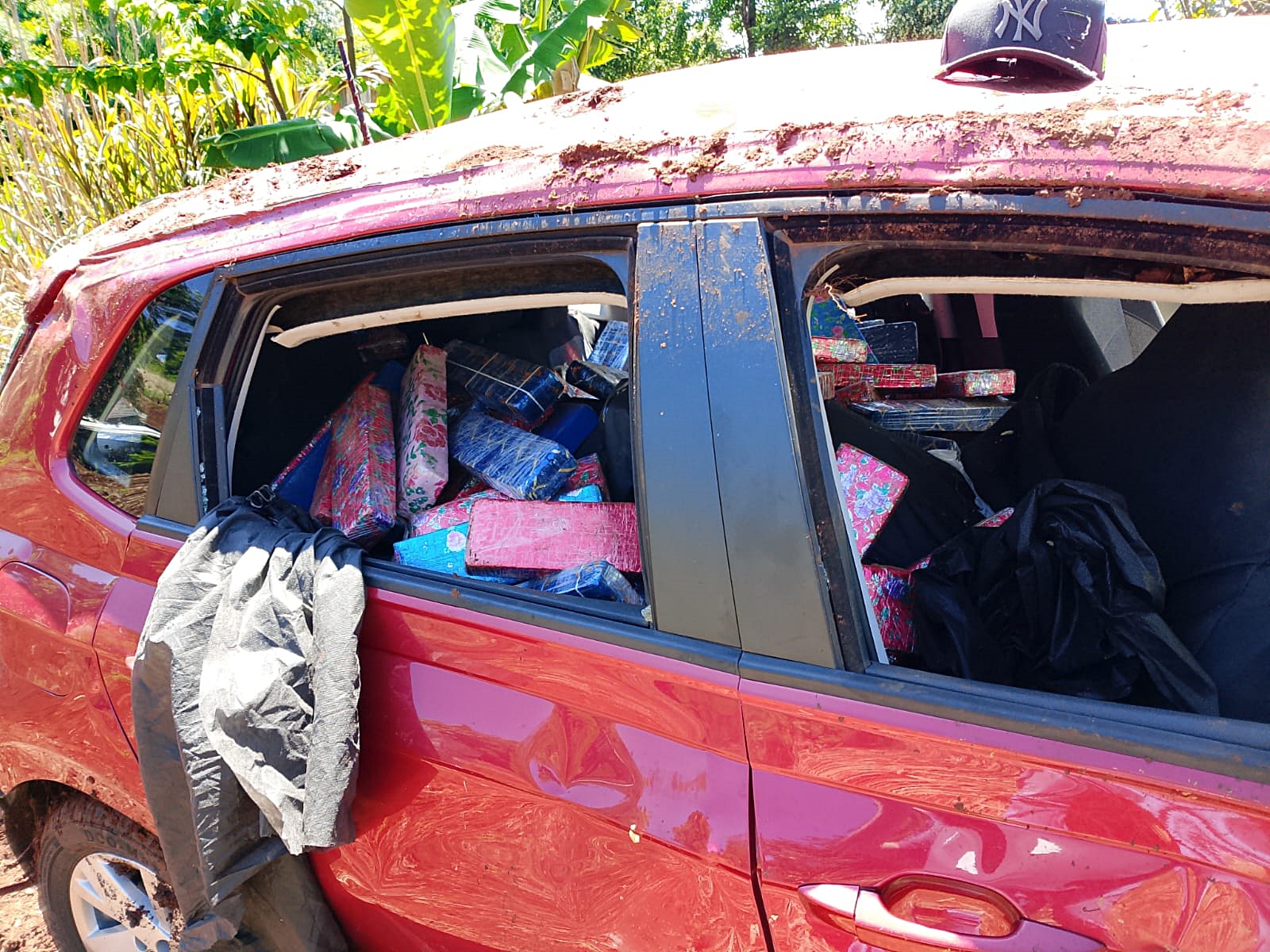 A Polícia Rodoviária Federal (PRF) apreendeu um carro carregado com maconha na BR-373, em Chopinzinho, no sudoeste do Paraná. Segundo a corporação, o veículo — um VW Polo — estava com tabletes da droga embalados como se fossem presentes.