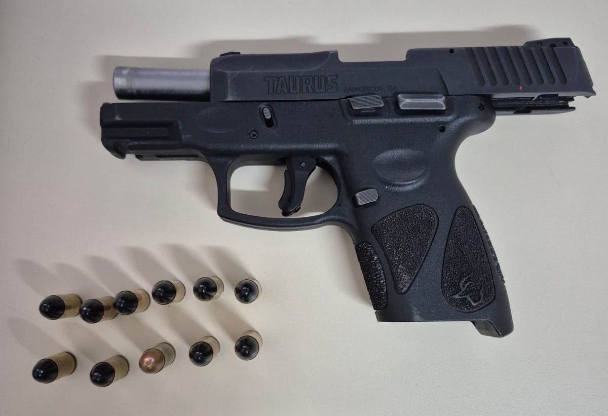 Durante o trabalho, os cães de faro localizaram uma pistola Taurus G2C, calibre 9mm, considerada de uso restrito, escondida sob o colchão do suspeito, além de 11 munições intactas. O homem assumiu a posse do objeto e confirmou não possuir registro ou autorização legal.