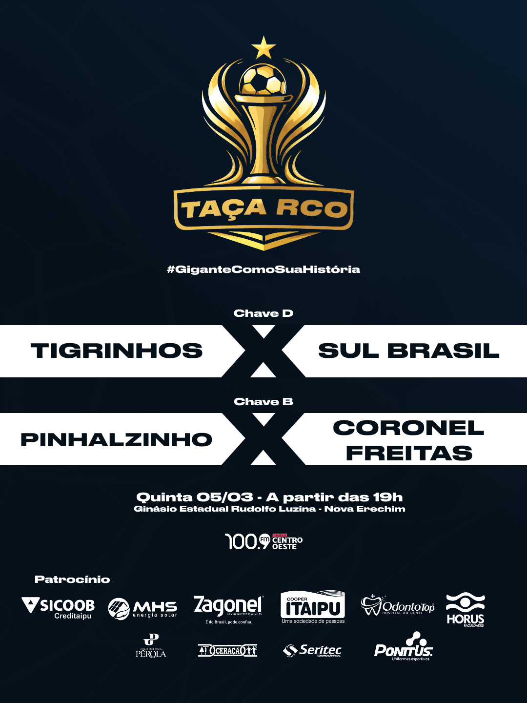 A 32ª Taça RCO - Gigante como sua história, segue aquecendo o cenário esportivo regional e terá sequência nesta quinta-feira (05), com oito partidas que serão realizadas simultaneamente em Saudades e Nova Erechim.