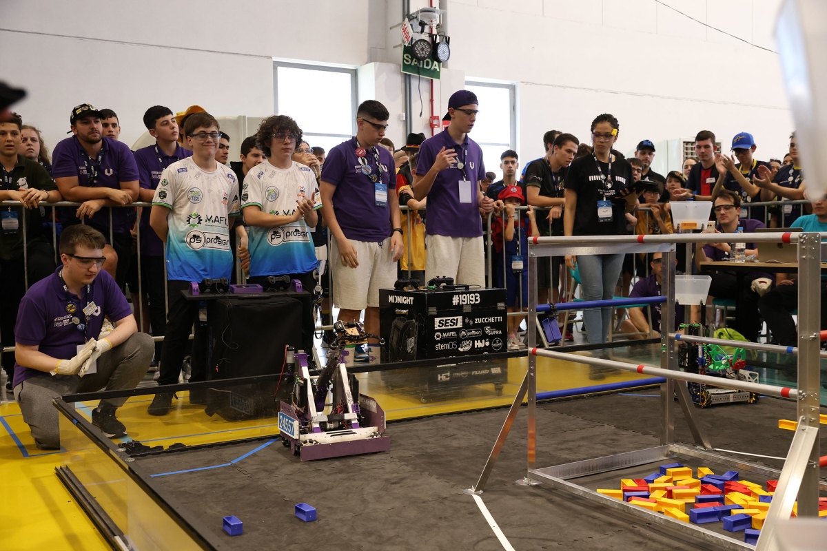 FRC - estudantes de 14 a 18 anos criam robôs de até 54 quilos e 1,5 metro para jogos em arena, em desafio próximo da engenharia profissional.