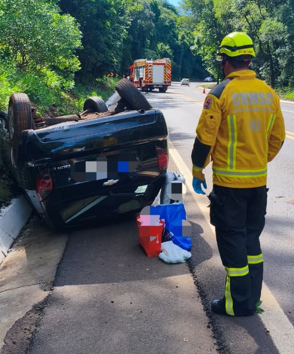 Mais tarde, por volta das 15h, outro acidente foi registrado na BR-282, desta vez em Cunha Porã. Um carro capotou próximo ao antigo posto da PRF. A motorista, de 25 anos, conseguiu sair do veículo sozinha.