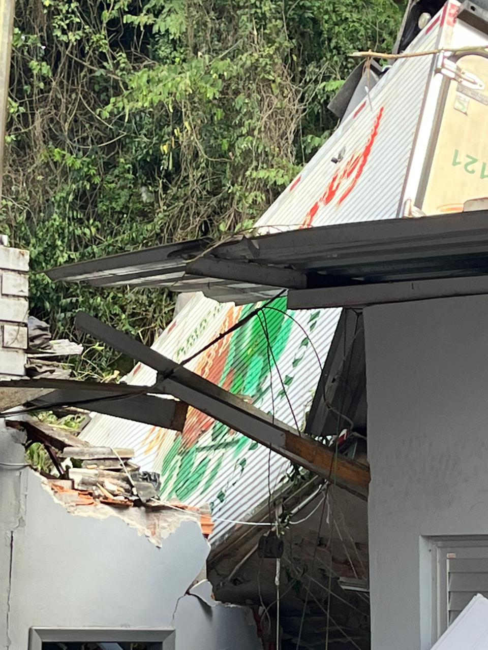 Com a força do impacto, o caminhão acabou atingindo parte de uma residência. Apesar do susto e dos danos, ninguém que estava na casa ficou ferido.