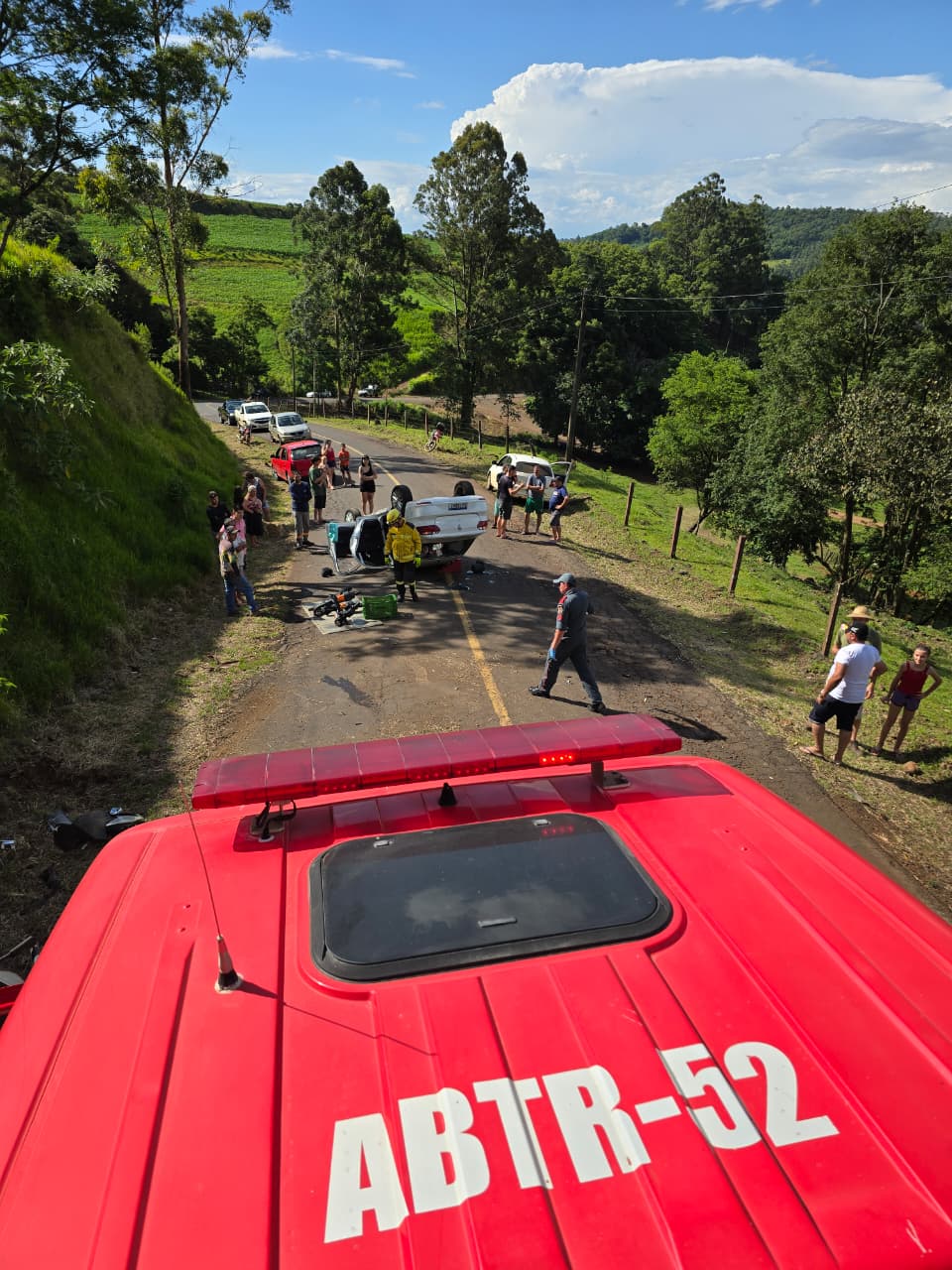 O Corpo de Bombeiros Militar de Xaxim atendeu, neste sábado (22), um acidente de trânsito do tipo saída de pista seguida de capotamento no acesso à linha Bento, no interior de Cordilheira Alta. A ocorrência foi registrada às 15h30.