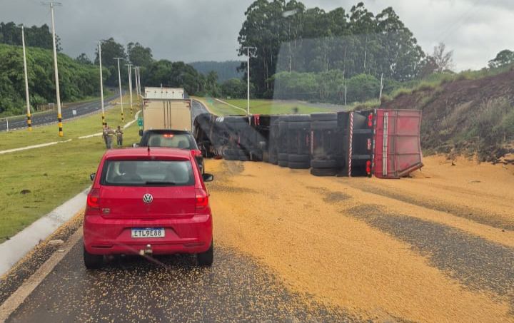 Cerca de uma hora depois, próximo ao trecho conhecido como Espelho das Águas em Chapecó, uma Scania estava lateralizada. Condutores que passavam pelo local registraram o acidente, mas até o momento não há informações sobre feridos.