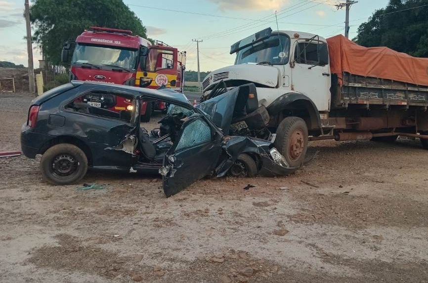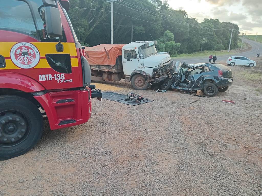 Um jovem de 18 anos ficou gravemente ferido após um acidente envolvendo um carro e um caminhão na SC-480, em São Domingos, no Oeste de Santa Catarina. A colisão aconteceu por volta das 18h30 desta quarta-feira (21).