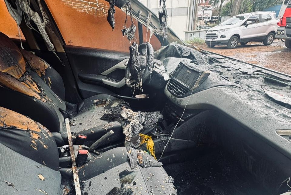 Segundo o Corpo de Bombeiros, quando a guarnição chegou ao local, o veículo já estava em chamas generalizadas, com o fogo em desenvolvimento avançado na parte frontal, atingindo motor e bateria.