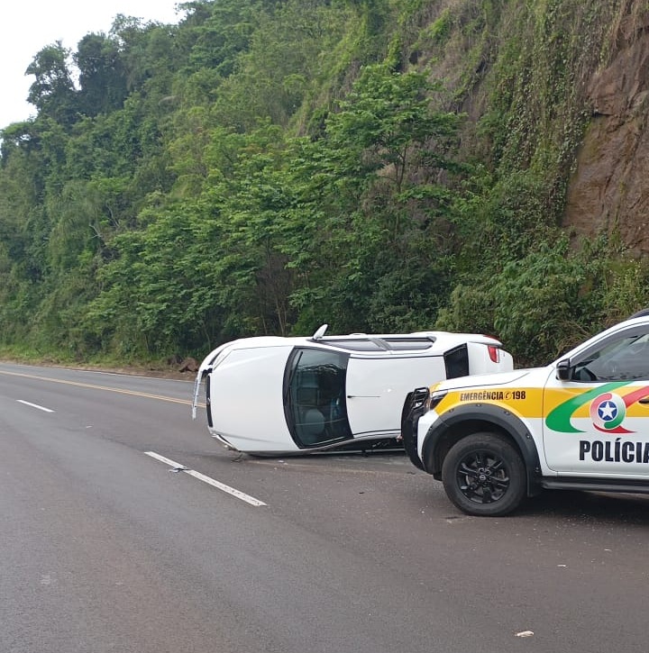 Na tarde deste sábado (1º), por volta das 13h, um Fiat/Siena, de Cordilheira Alta, se envolveu em um acidente de trânsito na SC-157, no km 63,3, em Quilombo. O veículo, que seguia sentido Coronel Freitas, saiu da pista, chocou-se contra um barranco e acabou capotando sobre a via.